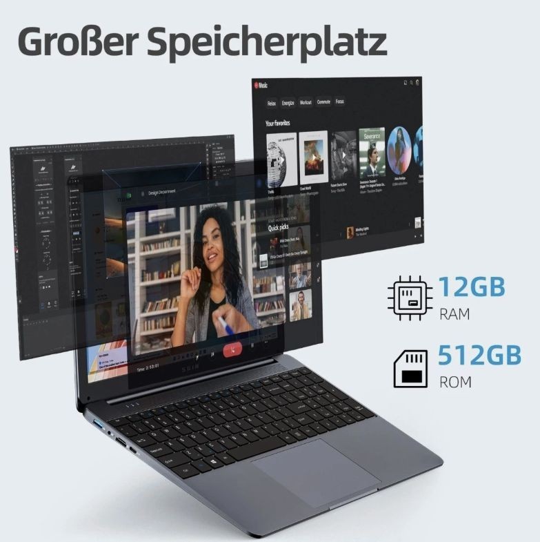 SGIN X15 - 15,6 Zoll FHD, Intel N5095a, 12 GB RAM, 512 GB SSD, Win11 Home, Grau,